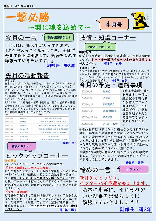 - 【バドミントン部】各大会の結果結果報告2024/6/10 バドミントン部